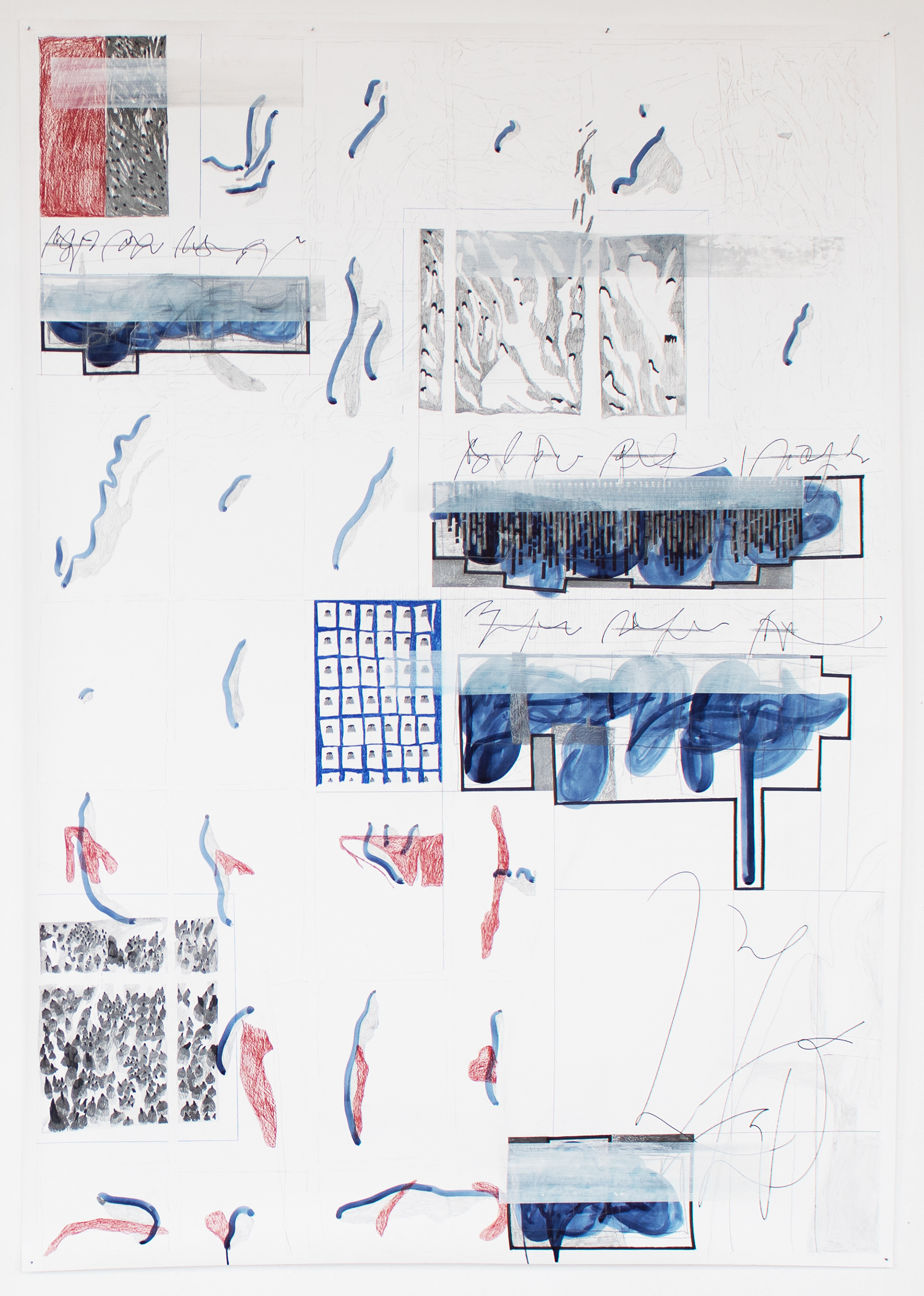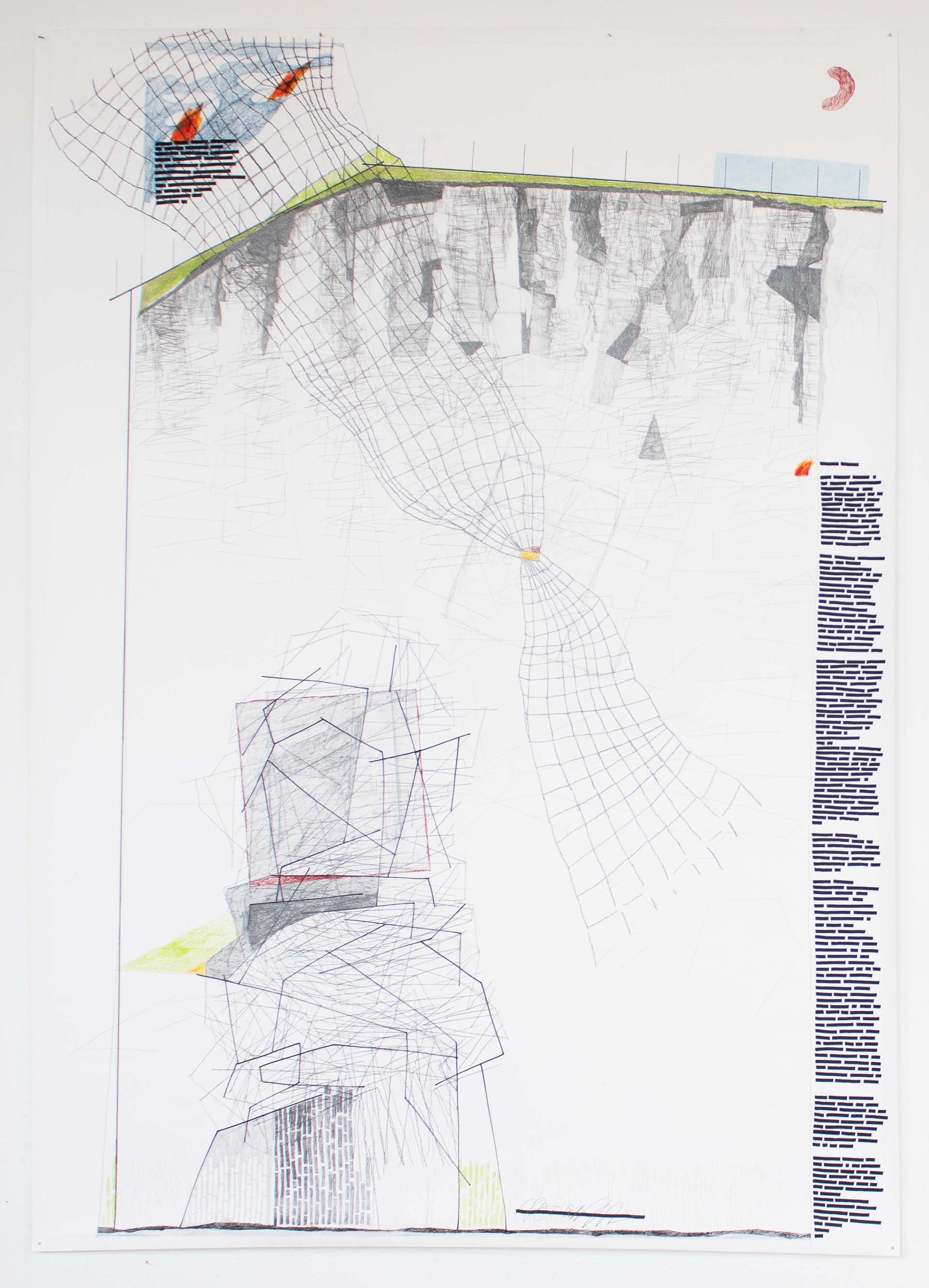 Serie: zwie prinzip 7 / Graphit, Buntstift, Acryl, Tinte und Maker auf Papier / 145 x 205 cm / 2020